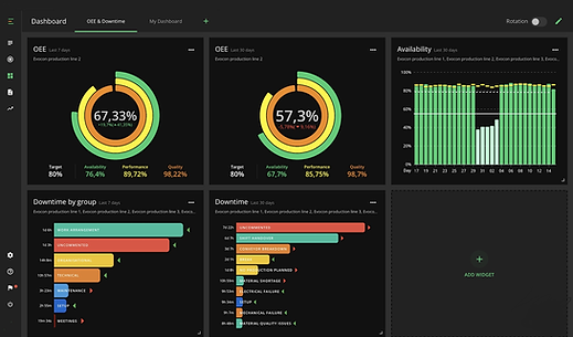 Historical Reports: BI dashboards spotlight trends (e.g. pie charts of downtime reasons, time-series charts; see image 2).